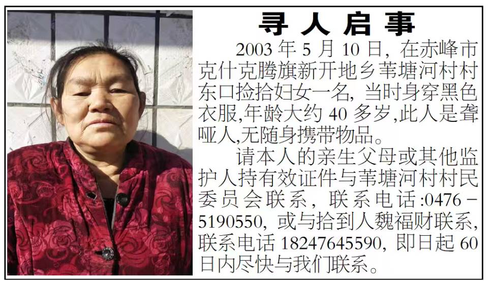 于1998-07-06日,在淄博市临淄区皇城走失